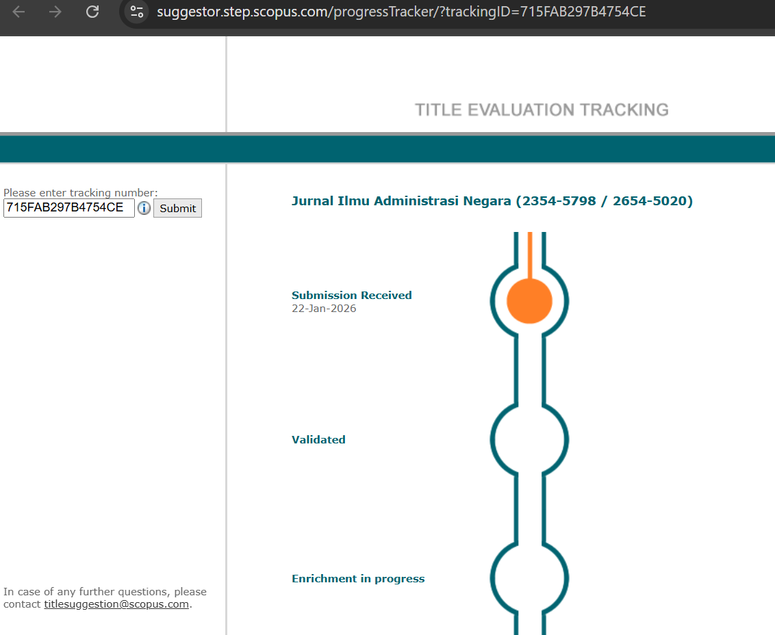 We are pleased to inform you that the Jurnal Ilmu Administrasi Negara (JUAN) has been submitted for Scopus Evaluation. This step reflects our ongoing commitment to strengthening the journal’s international visibility, publication quality, and scholarly impact in the fields of maritime policy, governance, and related studies.
